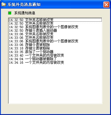 从网上看了一篇《分享windows的秘密-外壳通知消息》的文章,感觉很不错,可是它是delphi的程序,和VB相差很大,API在VB中没有对应的声明,并且一些结构体在VB中没有现成的定义,所以很是研究了一番,优盘的插入、拔出,光盘的插入、取出都有了相应的通知,效果不错。