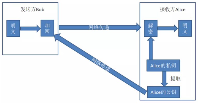 如果是对称加密,Bob需要把唯一的密钥告知Alice,Alice使用该密钥进行解密即可查看邮件内容.但这样做, 一旦在传输密钥的过程中消息泄露, 保密性也就荡然无存.