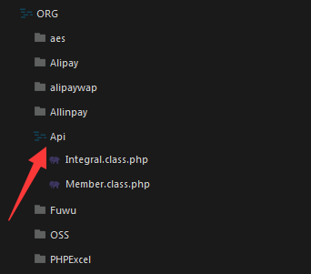 这样调用就方便了不管Api文件夹下有多少类,都会自动加载,不需要单个引用import("@.ORG.Api.Integral")了。