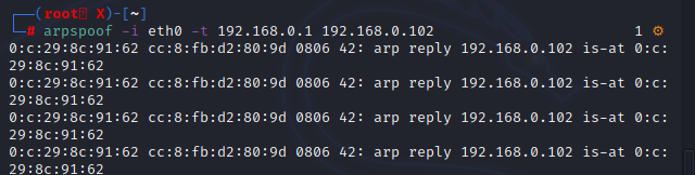 arpspoof -i 网卡 -t 目标网关 目标主机
