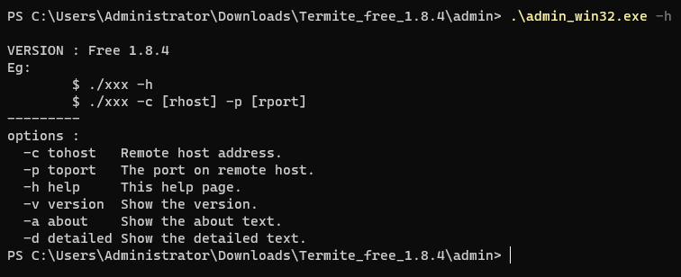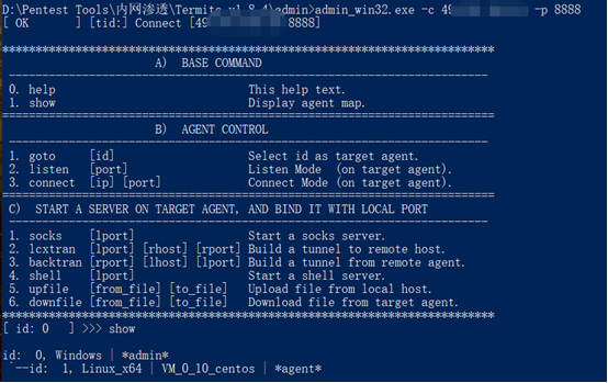 b.在 PC 运行:admin_win32.exe -c vps_ip -p 8888