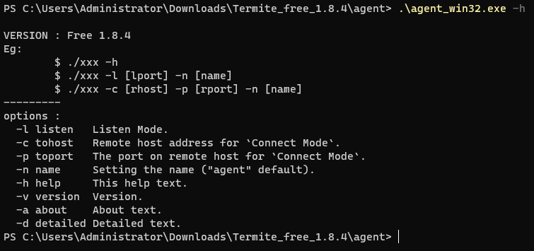 c.在出网机器A运行:agent_win32.exe -c vps_ip -p 8888