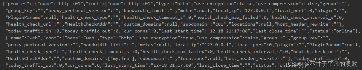 在实际使用过程中有时想通过程序动态的判断FRP上的服务是否在线,以便于做出是否可以跳转链接的决策,这时可调用FRP的服务列表接口即可获取到相关的信息了。