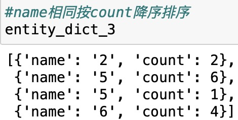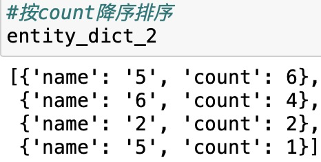 entity_dict_2 = sorted(entity_dict, key=lambda x: x['count'], reverse=True)