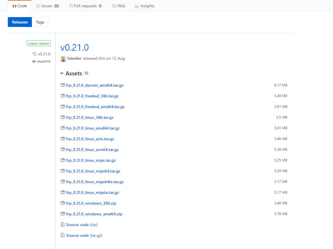 我下载的是 frp_0.21.0_linux_amd64.tar.gz