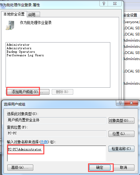 3.点击左下角的window图标,搜素【本地安全策略】,找到【安全设置】-【本地策略】-【用户权限分配】-作为批处理作业登录。