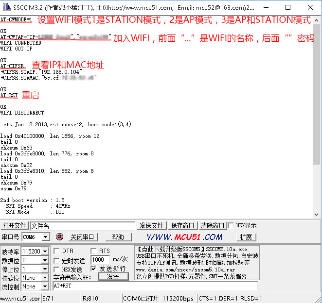 以上就是贤惠铅笔最近收集整理的关于无线WIFI模块 ESP8266 上手测试 AT指令的全部内容,更多相关无线WIFI模块内容请搜索靠谱客的其他文章。