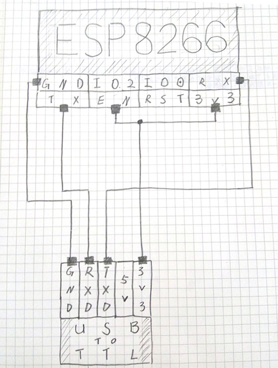 这种接线方式仅适合运行模式,如果要为ESP8266刷固件,需要外部提供3.3v电源以及另外的接线方式(IO0拉低,在以后的文章再加以说明)
