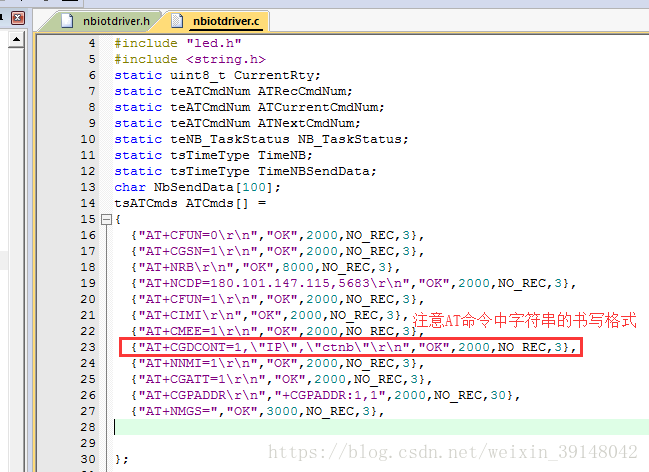 如何用数据结构来完成AT指令的发送、应答、超时、状态、重发:(新建 nbiotdriver.h 和 nbiotdriver.c 文件用于AT相关)