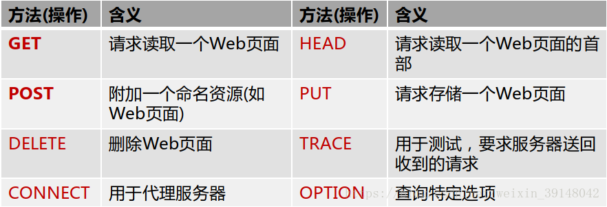 请求报文中的方法:方法(Method)是对所请求对象所进行的操作,也就是一些命令。请求报文中的操作有: