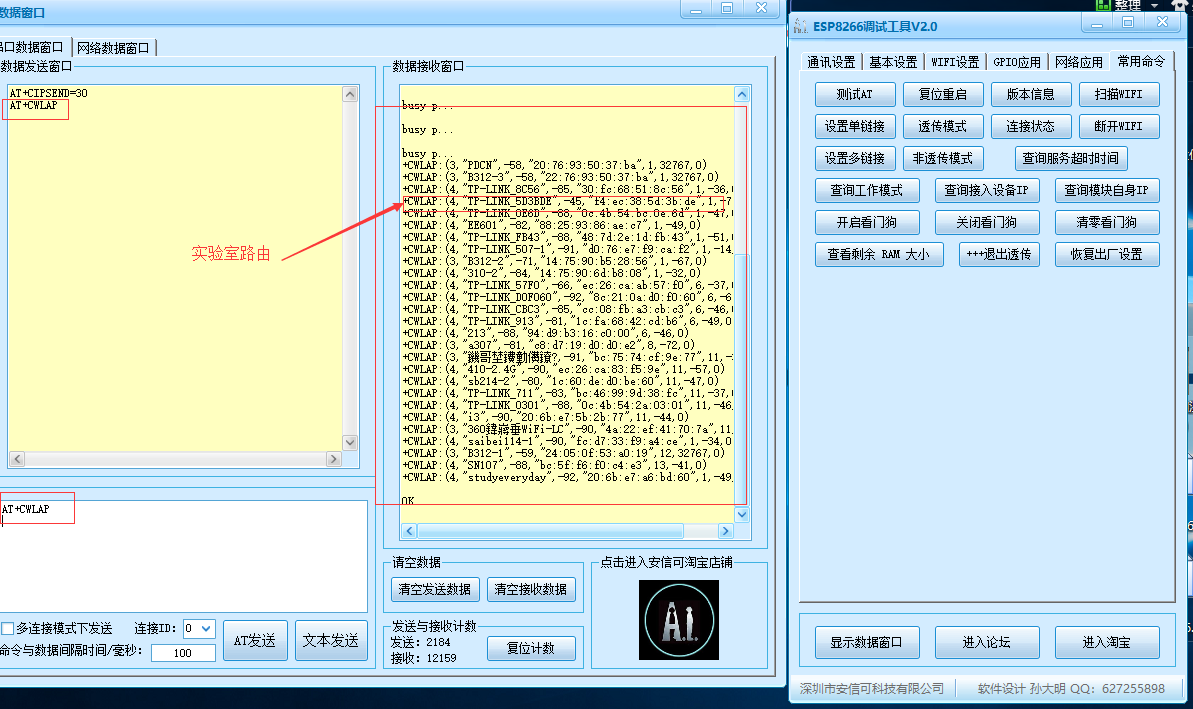 发送指令:AT+CWLAP