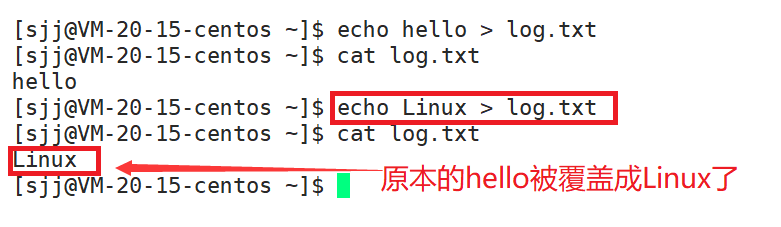 再次重定向,会清空原始文件内容,然后重新写入