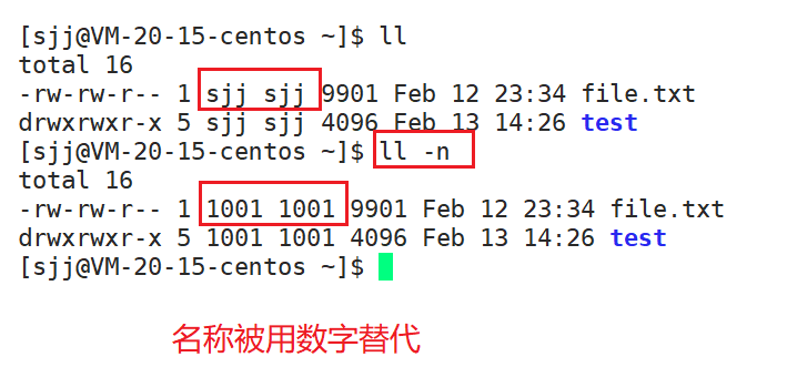 用数字的UID,GID代替名称