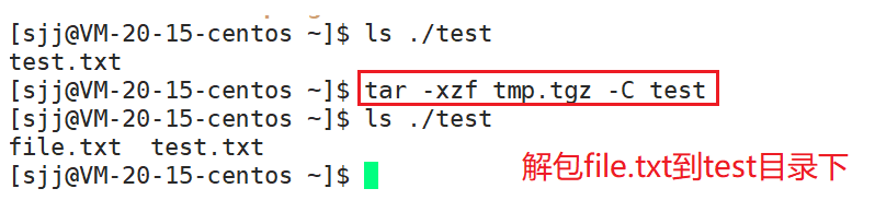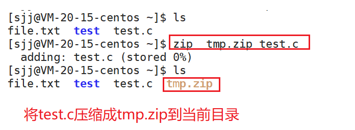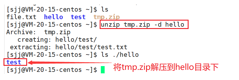 解压文件时若不带-d选项和目标目录,则默认解压到当前目录下