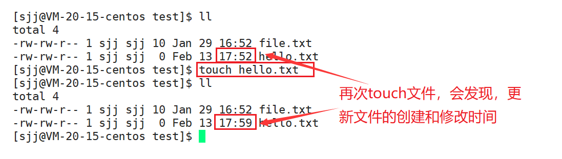 功能:创建新文件,touch命令可以更改文档或者目录的时间,存取日期和更改时间
