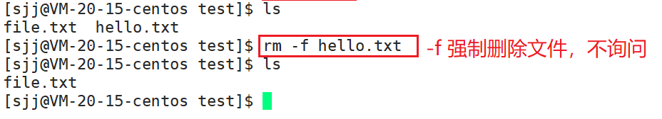 -f(force)强制删除文件或者目录,不询问