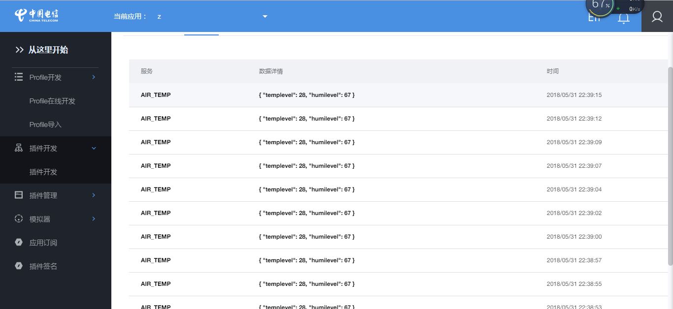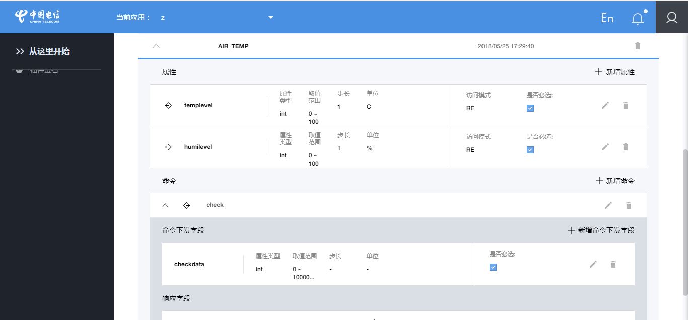 应用功能很简单,温湿度数据上报,主要通过低功耗STM32L系列MCU通过COAP上报传感器数据,其中,电信云的profile及插件开发如下: