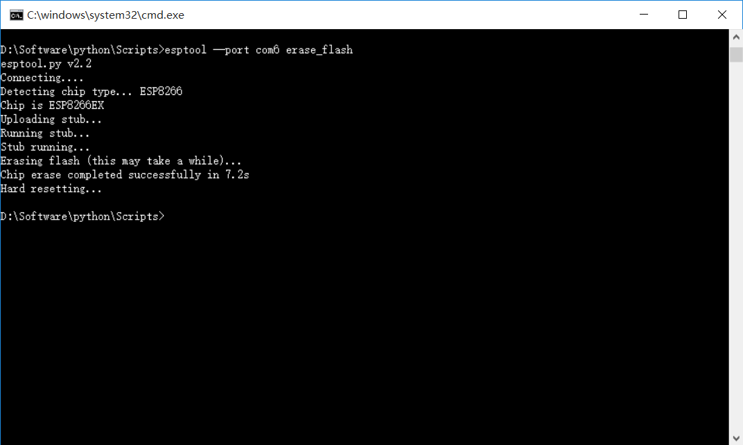 5.在命令行模式下,执行esptool --port comX erase_flash