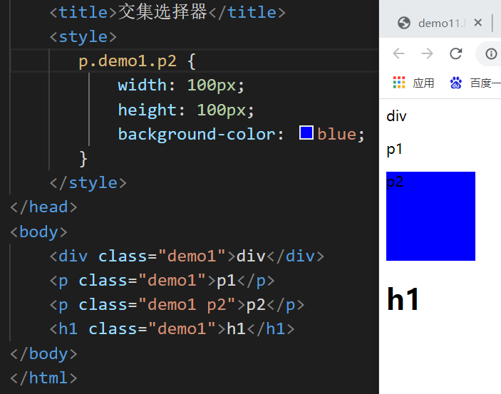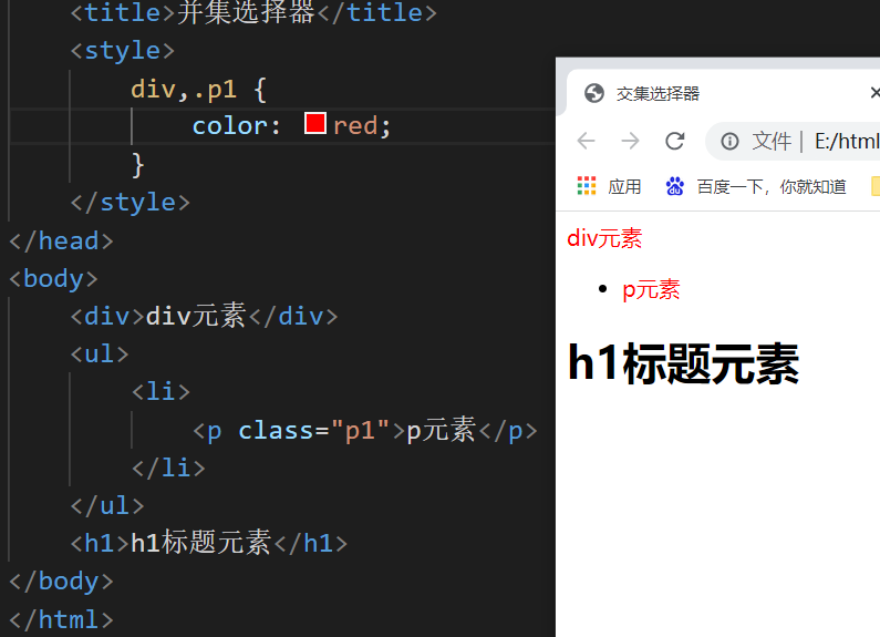书写方式:基础选择器进行连续书写,如果有标签选择器参与交集,必须书写在开头。