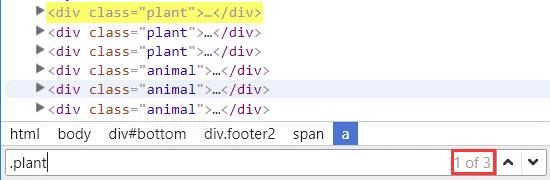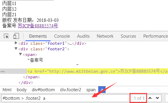 上图中的 1 of 1 就是指 :CSS 选择语法 #bottom >.footer2 a