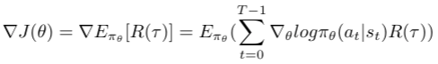 REINFORCE算法的策略梯度表达式如下所示: