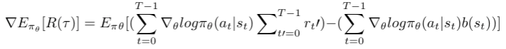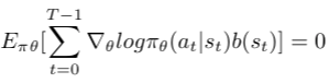 然后添加基线函数,如下所示修改策略梯度表达式:
