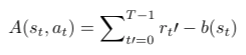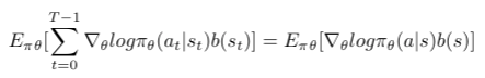 在上面的等式中要注意的重要一点是基线b是s_t而不是s_t` [4]的函数