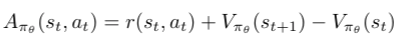 我们可以将奖励和基准期限称为优势函数。 可以表示如下: