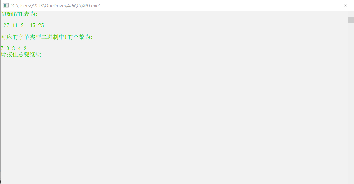 printf("nn对应的字节类型二进制中1的个数为:nn");
