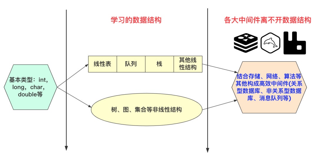简言之,数据结构是一系列的存储结构按照一定执行规则、配合一定执行算法所形成的高效的存储结构。在我们所熟知的关系数据库、非关系数据库、搜索引擎存储、消息队列等都是比较牛的大型数据结构良好的运用。当然这些应用中间件不单单要考虑单纯的结构问题。还考虑实际os、网络等其他因素。