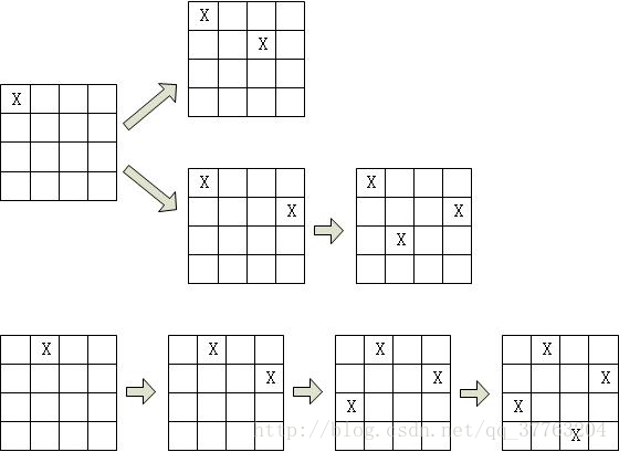 解释:如上图所示,4 皇后问题存在两个不同的解法。