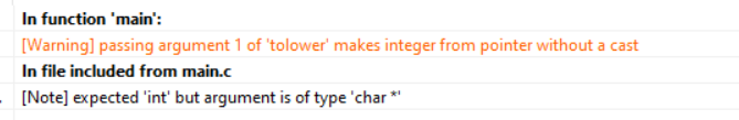 翻译下,tolower()函数返回值是个整数,%s需要输入一个字符型。