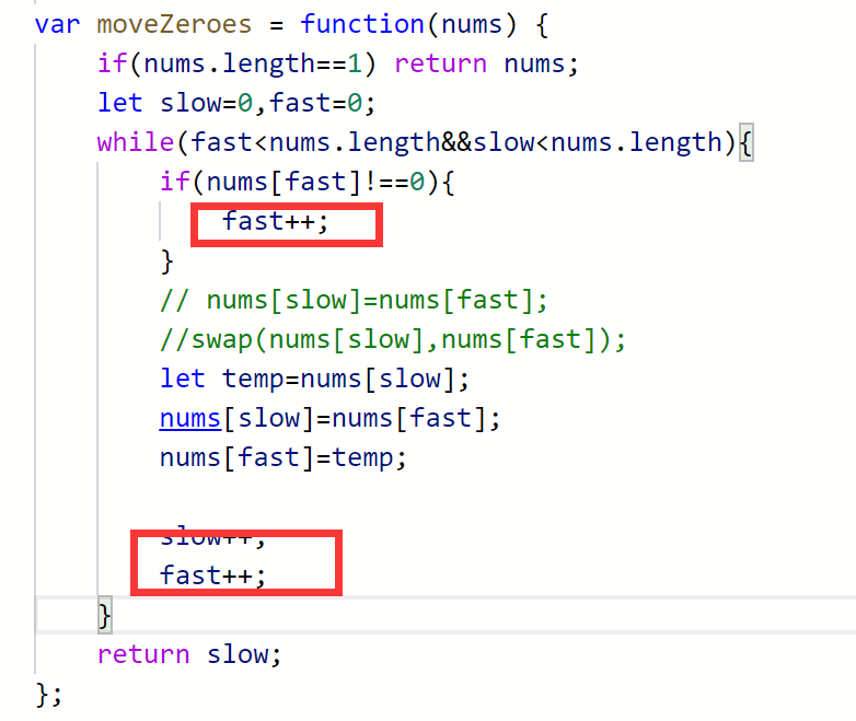 // 因为nums.length>=1 所以数组中至少有一个元素 slow和fast从1开始