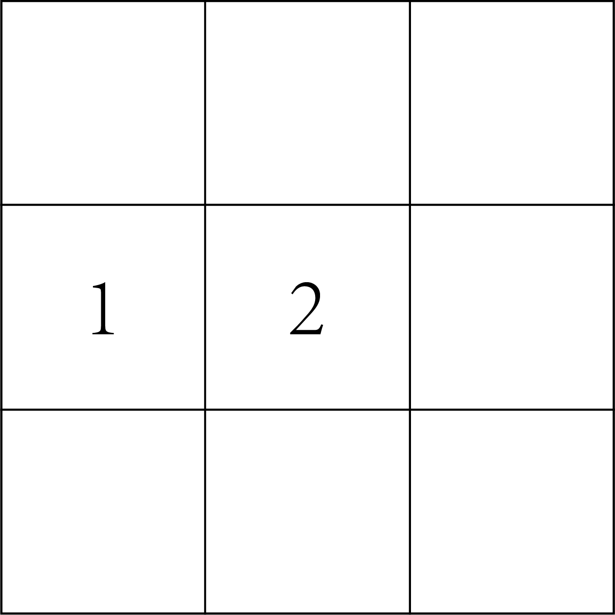 由上述公式(3)可知,假设从方格1向右走一步到达方格2,则可以写成: