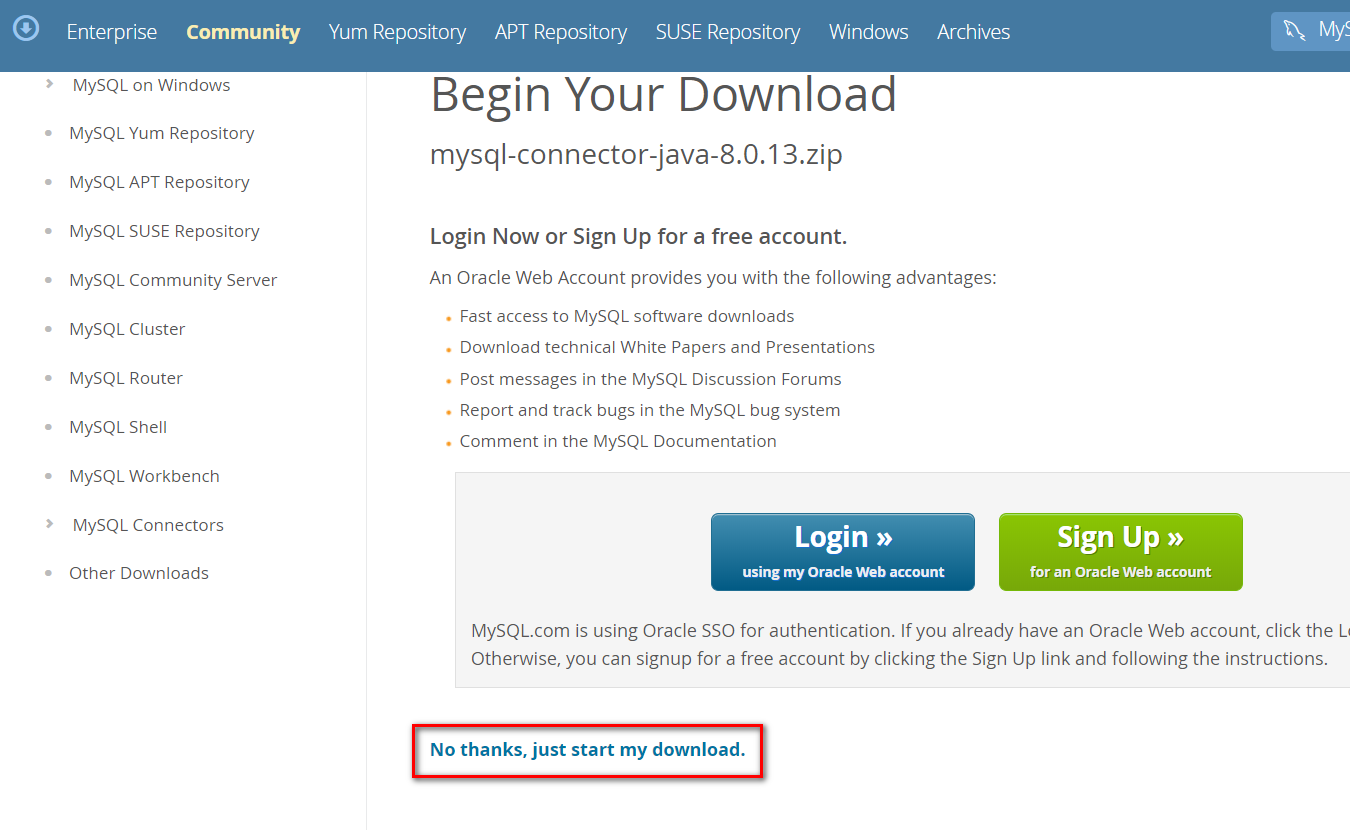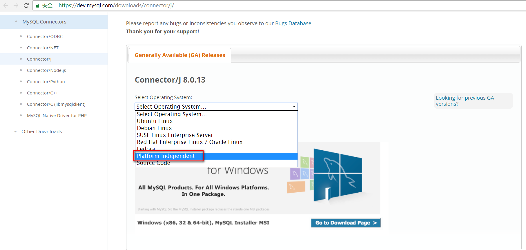 在官网https://dev.mysql.com/downloads/connector/j/下载mysql驱动