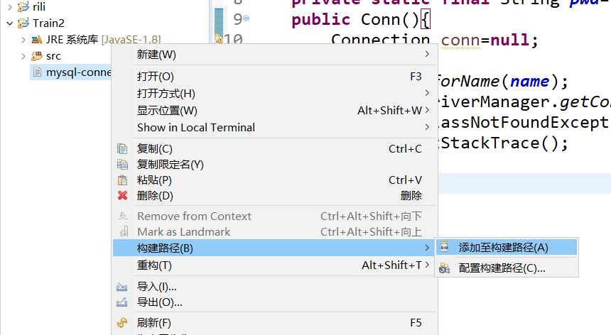 右击刚刚黏贴过来的文件:添加至构建路径,会发现多了一个引用的库