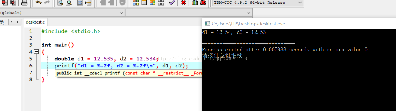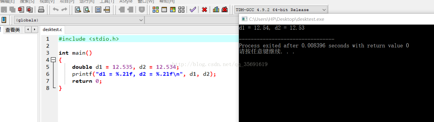 在devc中double和float可以用%f,double也可以用%lf进行输出