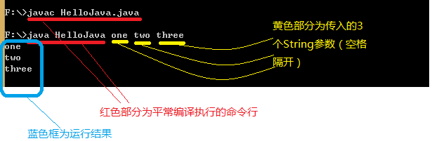 所以在命令行中使用String[ ] args即传入参数的使用为:java 类名 【参数1】 【参数2】 【参数3】 .。。。