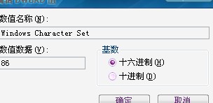第三步:双击名为”Windows Character Set“的DWORD值,将其数值数据改为0,点击确定。完成。