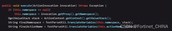 2、如下图所示。由于TextParseUtil.class类中调用了上图中的OgnlValueStack.findValue,从而通过注入此类来完成后续的漏洞攻击。