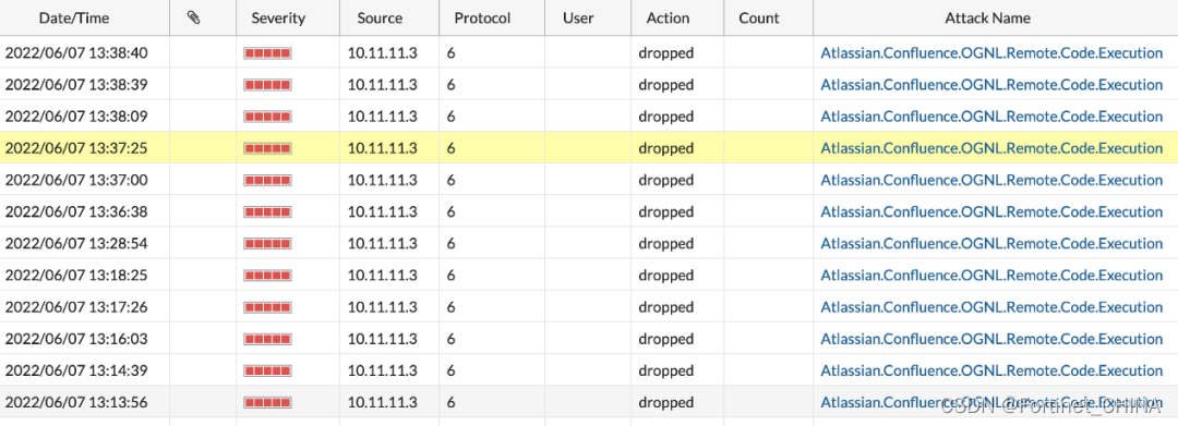 防火墙IPS模块对此攻击进行了阻断,并形成相关攻击日志