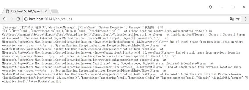 浏览器返回500错误,并且返回自定义的错误信息。