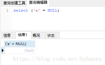 'a' = null 得到的是空值