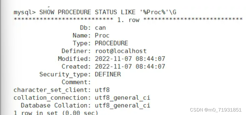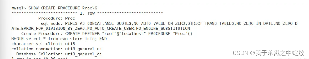 SHOW CREATE PROCEDURE [数据库.]存储过程名;