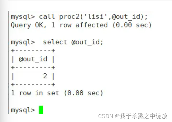 call proc2('lisi',@out_id);