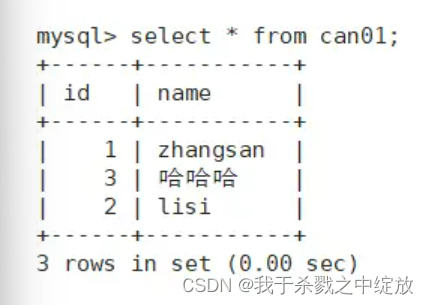 ->select * from can01 where name = myname;