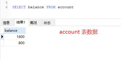2、account 表中有2条数据