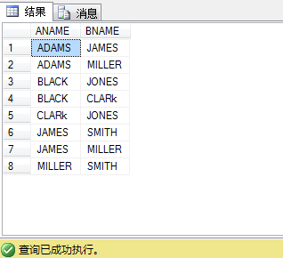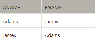 SELECT A.Ename AS ANAME, B.Ename AS BNAME