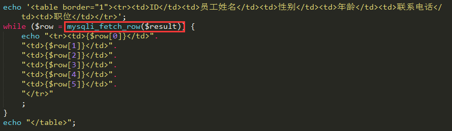 但是mysqli_fetch_row()用数字索引取值。比如: