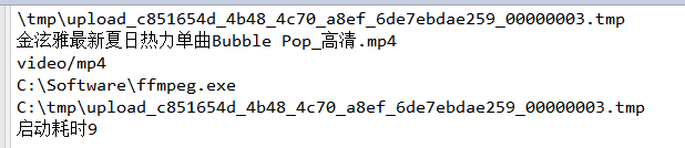 另外这里由java启动了另外一个进程,在我看来他们应该是互不相干的,java启动了ffmpeg.exe之后,应该回来继续执行下面的代码,所以并不需要单独起一个线程去提取缩量图。测试看也发现耗时不多。每次长传耗时也区别不大,下面是两次上传同一个文件耗时
